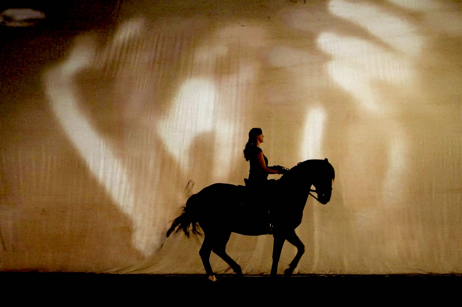 „Es geht als Scherenschnitt hin und her vor der Leinwand , auf der unterschiedliche Videosequenzen laufen. Es gibt Piaffen im Takt marschierender Soldaten. Hinterhandwendungen à la Autoscooter zu flimmernden Bildern mit Motiven aus dem modernen Großstadtwahnsinn, und all das in halber Dunkelheit, in der Laternen Lichtinseln schaffen und gespenstische Schattenwürfe, und über all dem die elektronisch- scheppernde Musik, die alles Schnauben und Stampfen aufsaugt und übertönt, was mitunter regelrecht hypnotische Momente erzeugt.“